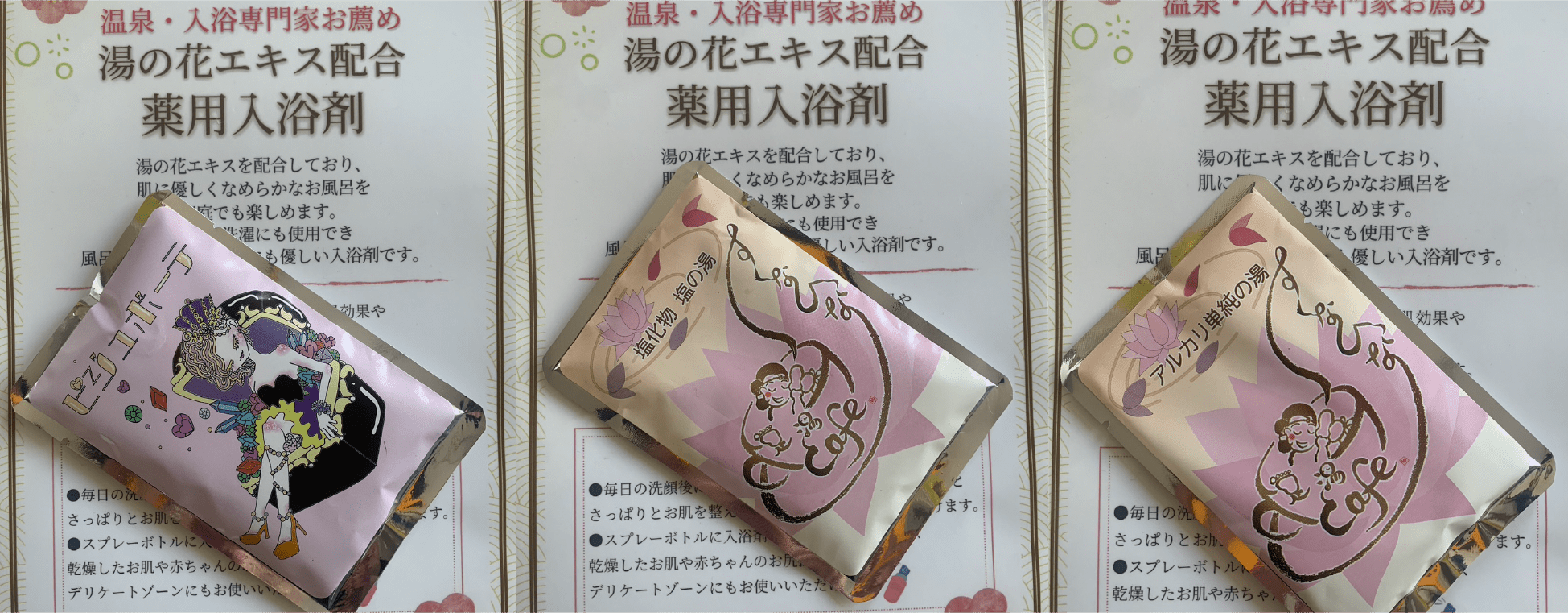 温泉成分が沈殿・固形化した湯の花のエキスを配合したオリジナルの入浴剤をプロデュースいたします。